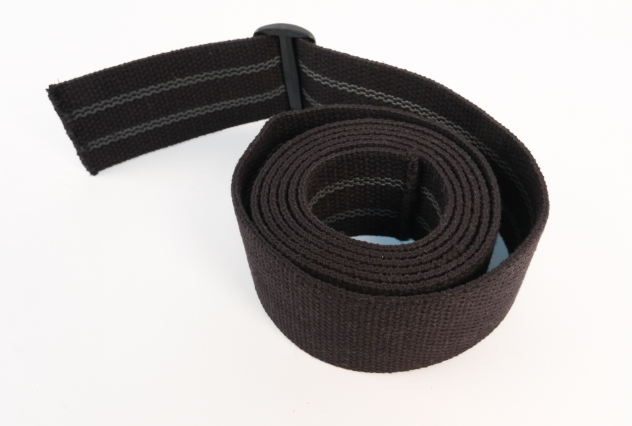 - Cotton with rubber non-slip gripper track woven in and metal snap hook ends